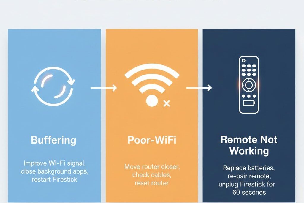 If your Firestick isn’t working, it’s usually due to WiFi issues, outdated software, or app cache overload. Restarting the device solves most beginner problems.